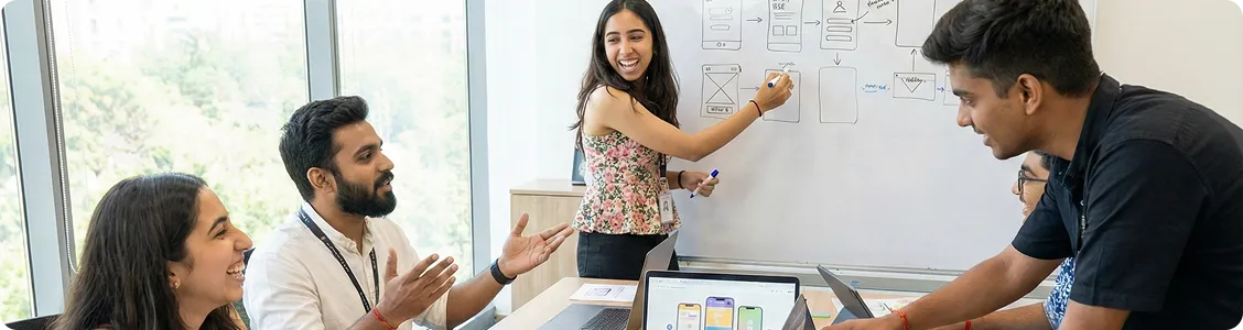 mirrors how real product organizations work. Students design, prototype, and iterate inside